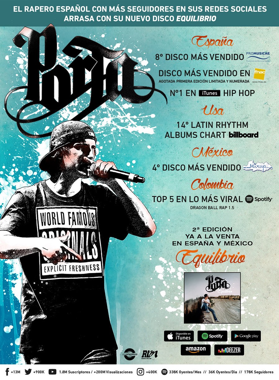 ‘Equilibrio’, el nuevo trabajo con el que Porta está celebrando su primera década en la música, está teniendo muy buena acogida entre el público, obteniendo altas posiciones en listas. El disco ha entrado directamente al #8 en la lista Promusicae de los discos más vendidos en España, mientras que en Itunes España alcanzó el #1 en categoría hip hop el día de su lanzamiento. En México el  #4, y en Usa ha llegado hasta el #14 en el chart de Latin Rythm Albums de Billboard. Un nuevo éxito que sumar a una carrera en la que ha conseguido situarse como el rapero español por excelencia con más de 13 millones de seguidores en Facebook y más de 200 visualizaciones de sus vídeos en Youtube.